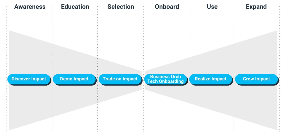 Demonstrating rational and emotional impact isn’t a one-time proposition. If you’re using the conventional sales and marketing funnel, your team should be thinking about impact every step along the way toward the sale.